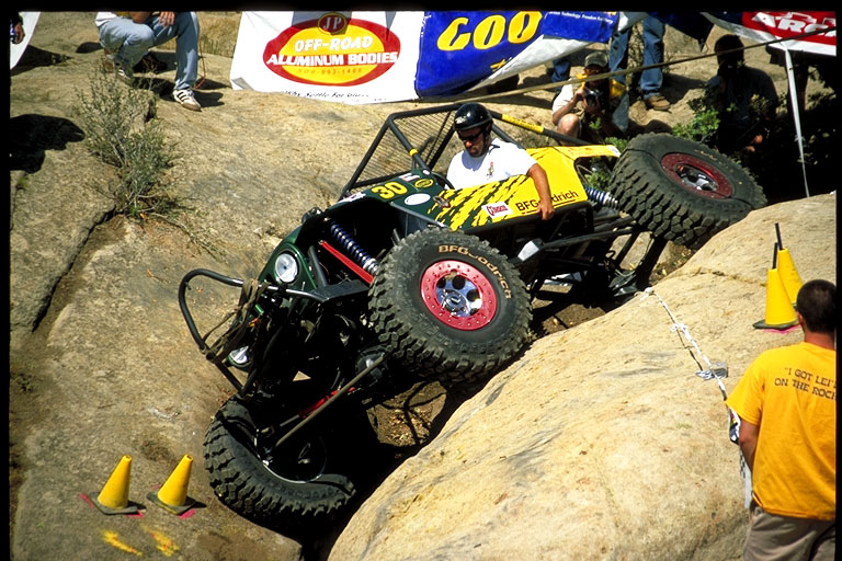 As Ken nears one set of gates, it becomes clear that it's going to be a very tight squeeze. He needs to keep all four tires tight against the wall, but at what point will he loose his balance and roll onto his side?