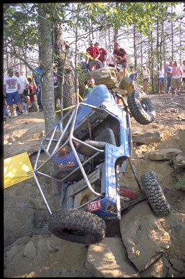 Dan Moses from Nashville Tennessee attempts to power out of the "Table Top" obstacle.